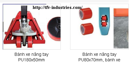 Ngoài ra còn có các loại bánh PU dùng cho xe nâng tay: PU80x93mm (xe nâng tay bánh đơn), PU180x50mm (bánh lái)...