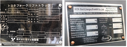 Bảng nhôm xe nâng hàng có thể cho bạn biết về tải trọng của xe, tải trọng lượng hàng hóa mà xe có thể nâng tại tâm nâng bao nhiêu mét, năm sản xuất chiếc xe đó.