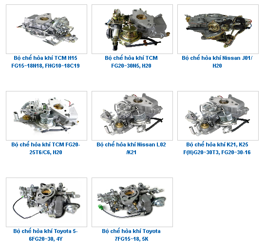 Chúng tôi có Bộ chế hòa khí động cơ xe nâng Toyota 1DZII, 2Z, 3Z. 1DZ-II, TCM Isuzu C240, Kubota V2403, GCT K21, KOMATSU 4D94LE v.v... xin quý khách vui lòng thông báo model xe và model động cơ chúng tôi có thể cung cấp tất cả các loại phụ tùng của tất cả các hãng