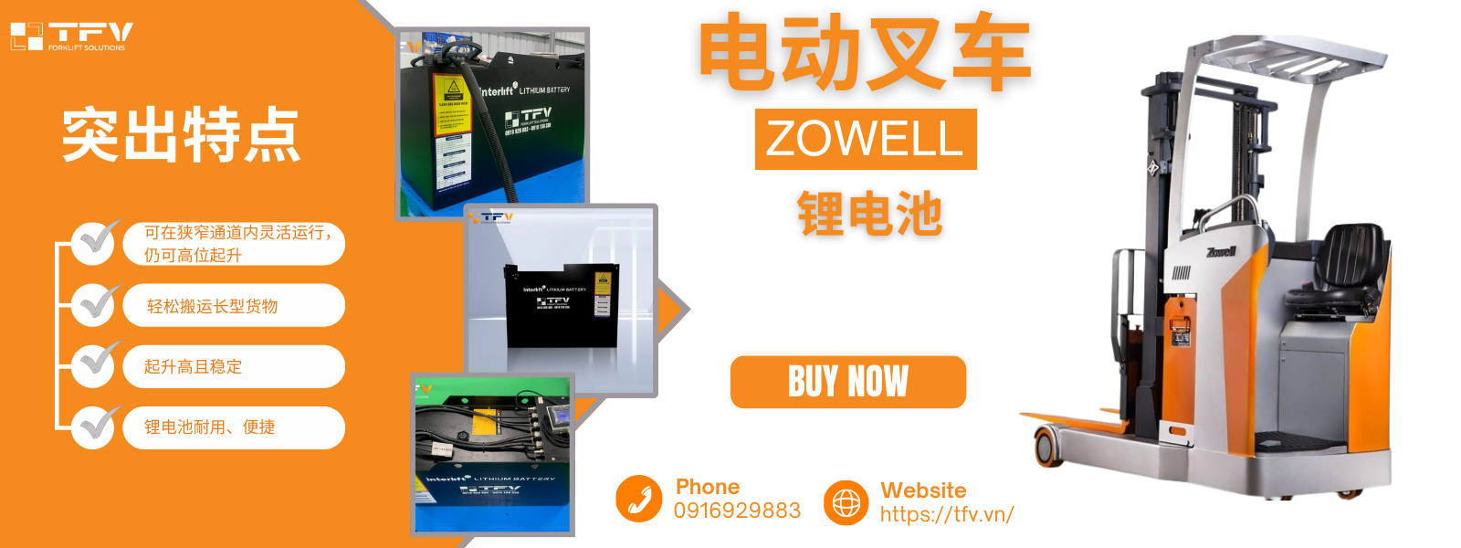 Zowell Forklift 锂电电动叉车