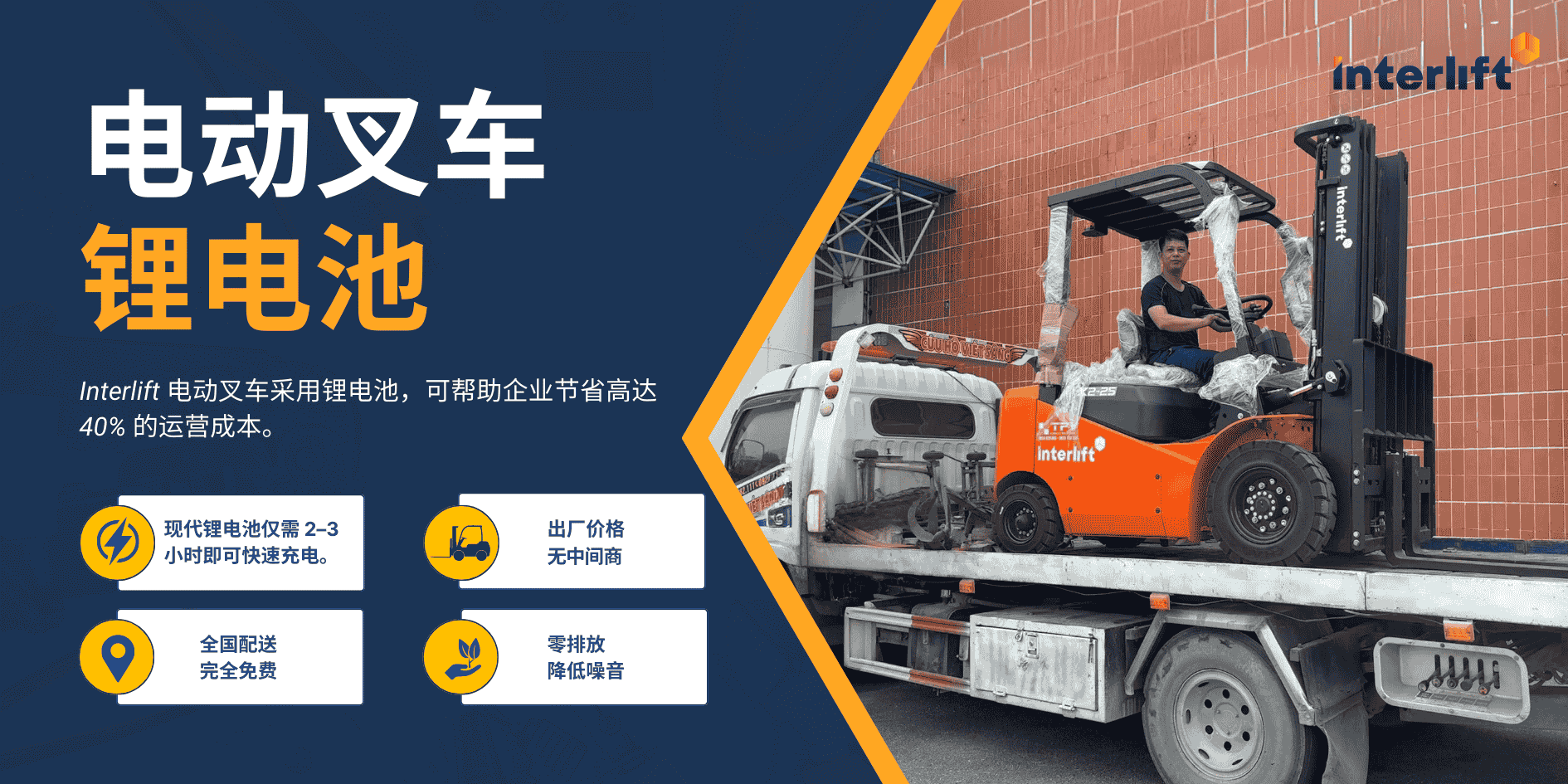 Interlift 是 TFV 在越南独家分销的锂电与叉车品牌,产品来自 Xilin、Jialift、MiMA 等全球 OEM 厂商,直接由工厂交付,减少中间环节,为客户提供高品质且高性价比的锂电叉车。
