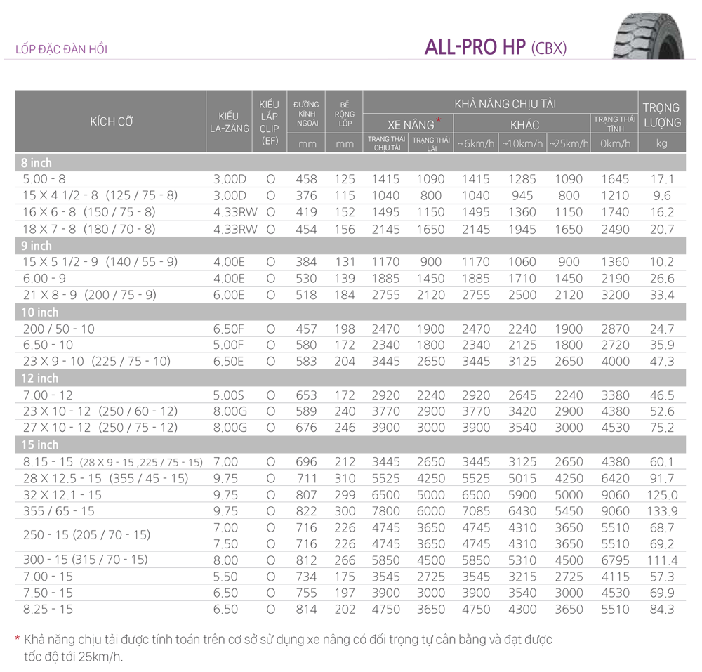 Lốp 700-12 : 4.3xx.000 Lốp 8.25-15 : 7.8xx.000