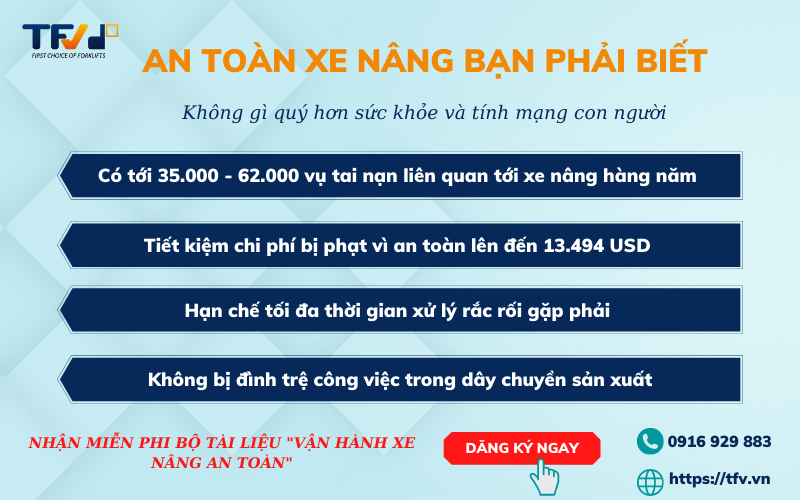- Có tới 35.000-62.000 tai nạn liên quan tới xe nâng hàng hàng năm.