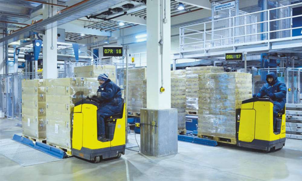 Một số DC trong kho lạnh có thể lựa chọn hệ thống lưu trữ và truy xuất tự động hoặc tự động hóa khác để giảm thiểu nhu cầu sử dụng xe nâng. Nhưng đối với nhiều kho lạnh DC, xe nâng điện được sử dụng để xếp dỡ hàng hóa.