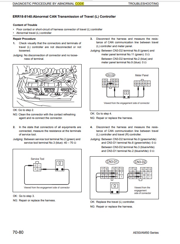 ERR-3082 The communication between travel (R) controller and travel (L) controller is abnormal. < 70 – 28 >