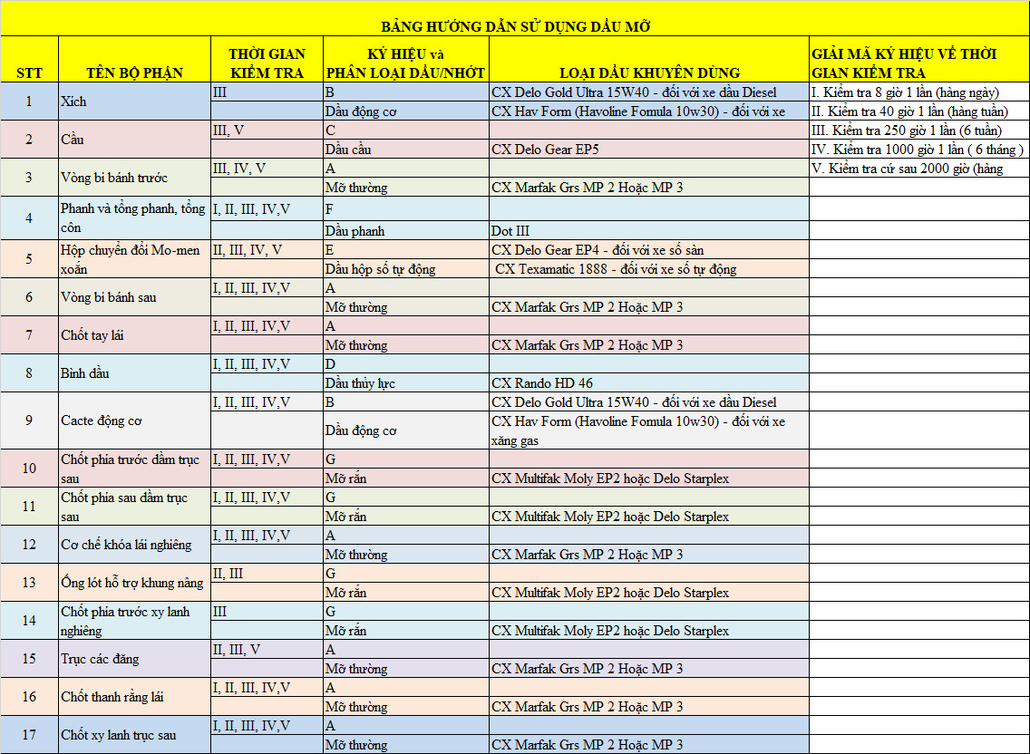 Chính xác các loại dầu, các loại mỡ khác nhau được sử dụng cho các vị trí khác nhau