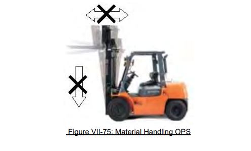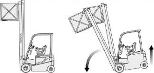Trong điều kiện chiều cao thang máy lớn, tốc độ nghiêng về phía sau được làm chậm lại để tránh đổ hoặc đổ hàng hóa