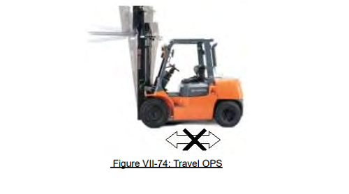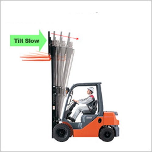 Góc nghiêng về phía trước bị hạn chế dựa trên tải trọng trong điều kiện chiều cao nâng cao để cải thiện độ an toàn chống lại lật ngược chiều về phía trước.