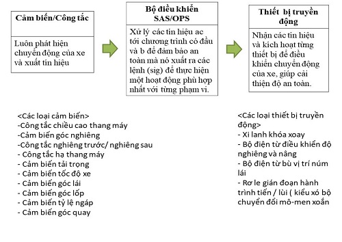 Hệ thống bao gồm các cảm biến, bộ điều khiển và cơ cấu chấp hành, đồng thời các cảm biến phát hiện thang máy di chuyển mọi lúc.