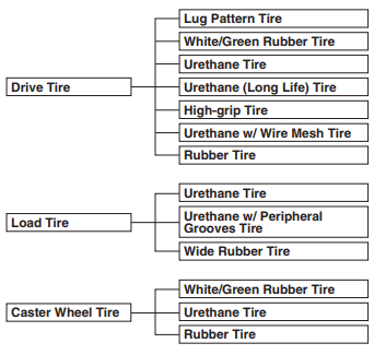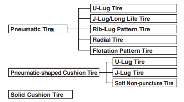 Các loại lốp sau đây có sẵn để sử dụng cho xe nâng điện.