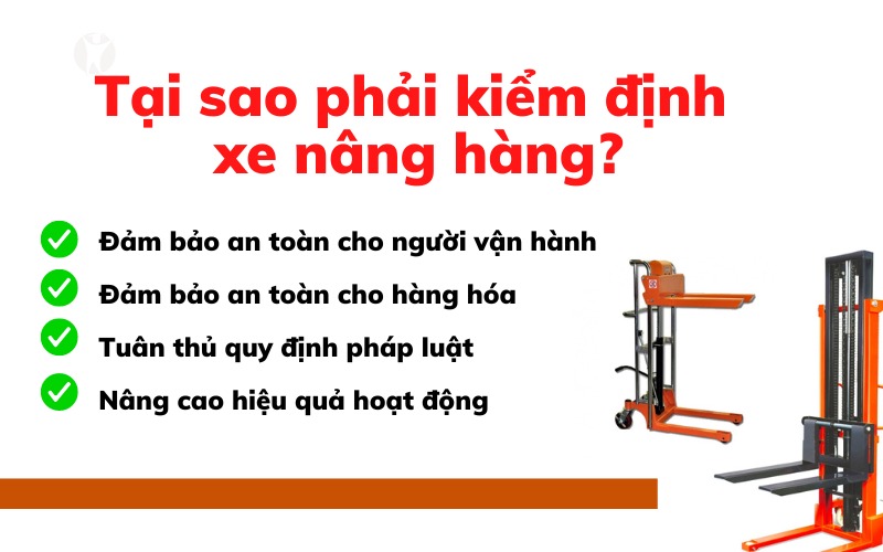 Theo tiêu chuẩn kỹ thuật trong kho vận, mỗi loại thiết bị nâng hạ phải đạt mức an toàn nhất định trước khi sử dụng. Kiểm định là cách kiểm chứng thiết bị đó có đáp ứng tiêu chuẩn hay không, đặc biệt với hệ thống thủy lực xe nâng, phanh, khung và điện.