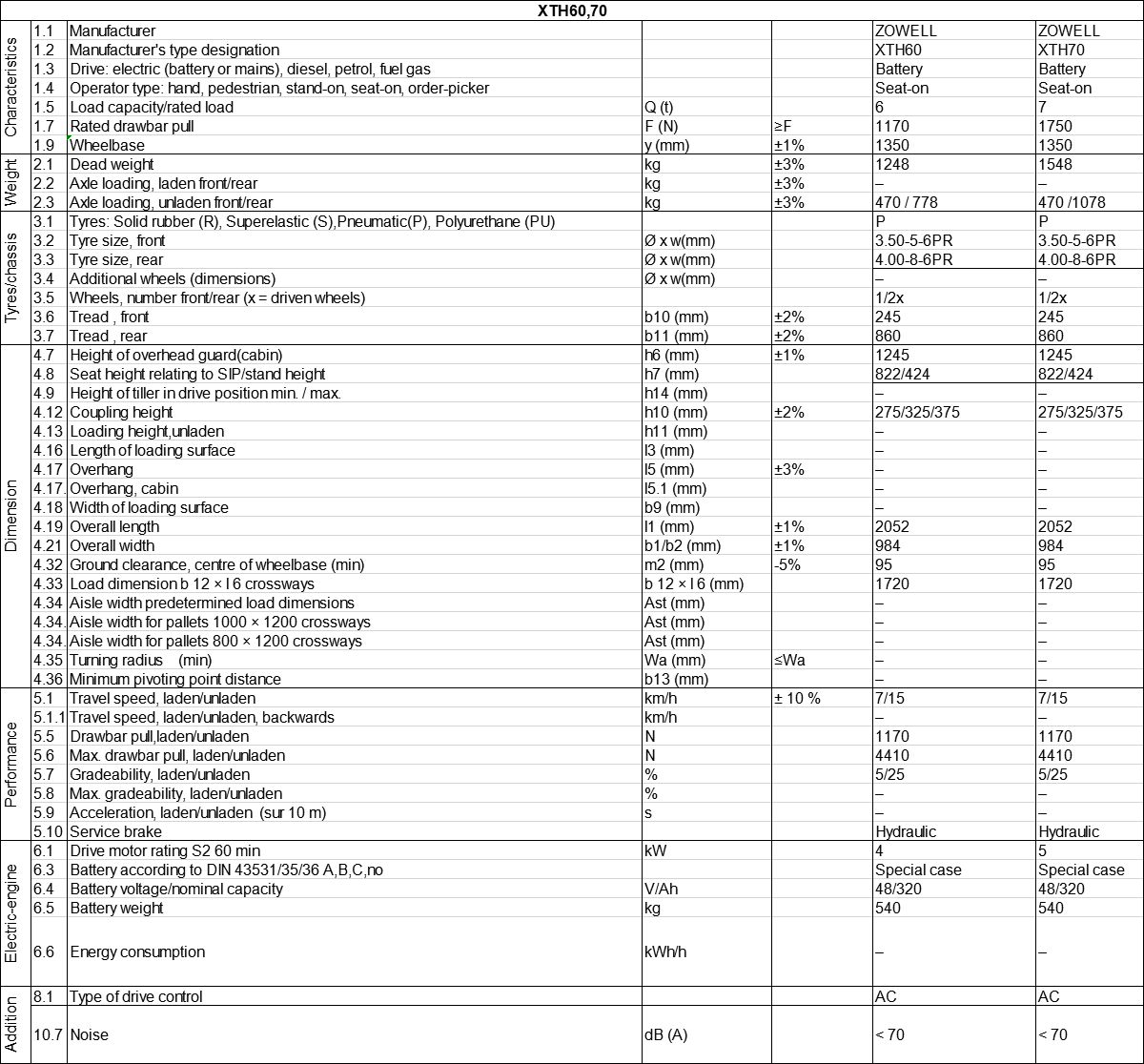 Xe đầu kéo 6 tấn Zowell XTH60 là phương tiện lý tưởng cho các lĩnh vực yêu cầu vận chuyển nhanh chóng và hiệu quả nhiều tải trọng rơ mooc khác nhau, bao gồm các ngành công nghiệp và thương mại cũng như các xưởng sửa chữa đặc biệt. Nó rất linh hoạt và cơ động. Tải trọng của nó lên tới 6000 kg. Bên cạnh đó, cấu trúc đặc biệt của nó đảm bảo độ bền và độ tin cậy nhất quán. Cabin bảo vệ có sẵn để sử dụng ở ngoài trời. Nó rất phổ biến trong nghành công nghiệp oto và hậu cần. Nó chủ yếu được sử dụng để kéo và lấy hàng, và nó đặc biệt thích hợp cho hàng hóa mà di chuyển trong dòng chảy liên tục. Nó được sử dụng rộng rãi cho các ngành cần nguyên tắc đúng lúc.