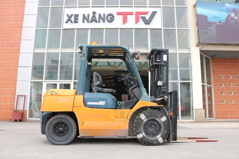 Xe nâng động cơ dầu Nhật Bản tuy đã qua sử dụng nhưng khi nâng hạ rất chắc chắn và nhanh chóng. Có thể nâng khối lượng 4.5 tấn lên 3.5 mét rất an toàn.