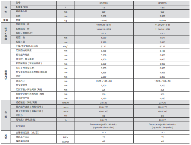 Bảng thông số kỹ thuật xe nâng dầu 13.5 tấn hiệu Kion Baoli