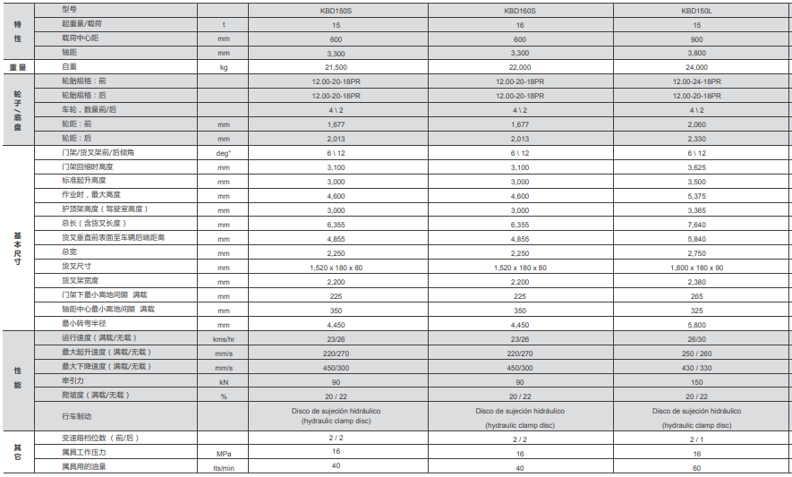 Bảng thông số kỹ thuật xe nâng dầu 15 tấn hiệu Kion Baoli