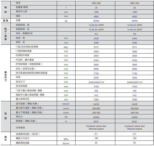 Bảng thông số kỹ thuật xe nâng dầu 30 tấn hiệu Kion Baoli