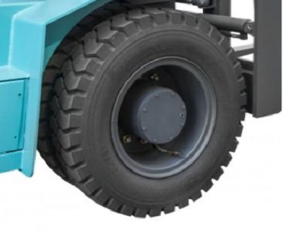 - Hệ thống lốp trước của xe nâng 30 tấn KBD300 là lốp kép có khả năng chịu tải cao, dễ dàng di chuyển qua đường xấu.