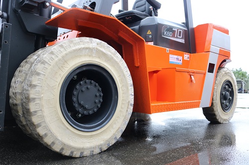 Hệ thống lốp trước của xe nâng 7 tấn KBD70 là lốp kép có khả năng chịu tải cao, chống lầy tốt