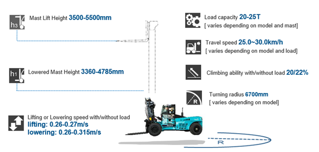 Sản phẩm thuộc dòng Baoli KBD200–320 Series của KION Baoli (Jiangsu) – thương hiệu nằm trong tập đoàn KION Group (Đức), mang đến giải pháp nâng hạ siêu tải 25 tấn với khả năng vận hành bền bỉ, tiết kiệm nhiên liệu và đảm bảo an toàn tuyệt đối.