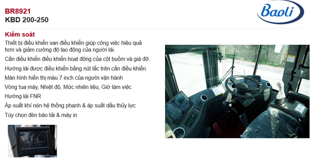 Với khung gầm cực kỳ chắc chắn, động cơ tăng áp công nghiệp và hệ thống thủy lực đôi chính xác, Baoli KBD250 trở thành lựa chọn lý tưởng cho các doanh nghiệp cần xe nâng tải nặng, hiệu suất cao và chi phí vận hành thấp.