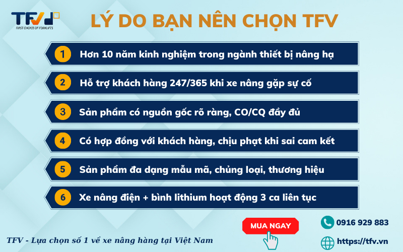 TFV luôn tự hào là lựa chọn số 1 về xe nâng hàng tại thị trường Việt Nam với nhiều ưu điểu nổi bật !