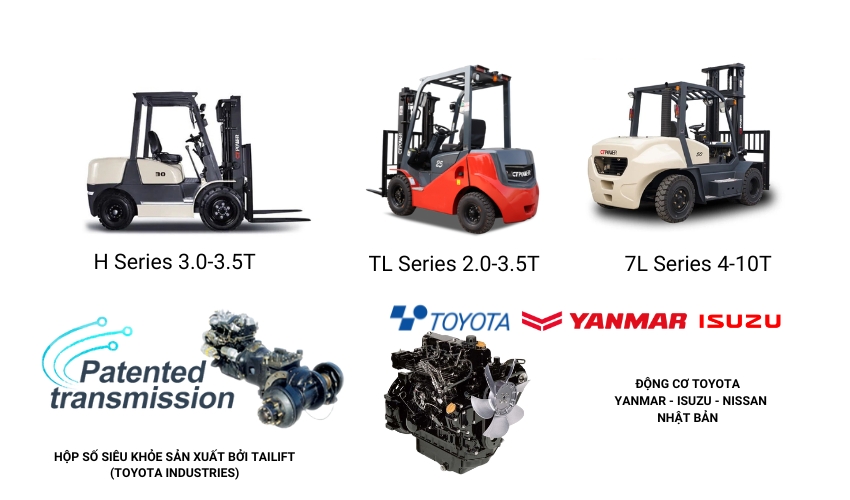 Xe tiêu chuẩn luôn có sẵn tại kho Hà Nội - Bình Dương các tải trọng 2.5-3.0-3.5T TL Series