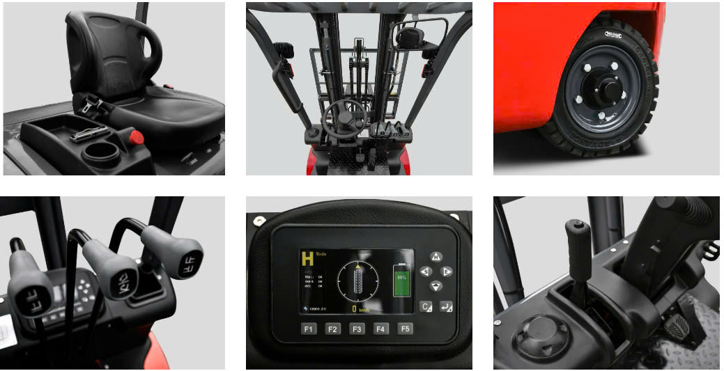 Chúng có hệ dẫn động kép phía trước, tay lái điện và hệ thống AC hoàn toàn không cần bảo dưỡng. Động cơ dẫn động kép phía trước cung cấp nhiều công suất hơn, đảm bảo khả năng leo trèo và thoát hiểm tốt hơn. Động cơ công suất cao đảm bảo hiệu quả. Lý tưởng để xử lý hàng hóa có kích thước nhỏ đến trung bình trong lối đi hẹp, với tốc độ di chuyển cao, pin dung lượng lớn, công thái học tuyệt vời, dễ vận hành và an toàn.