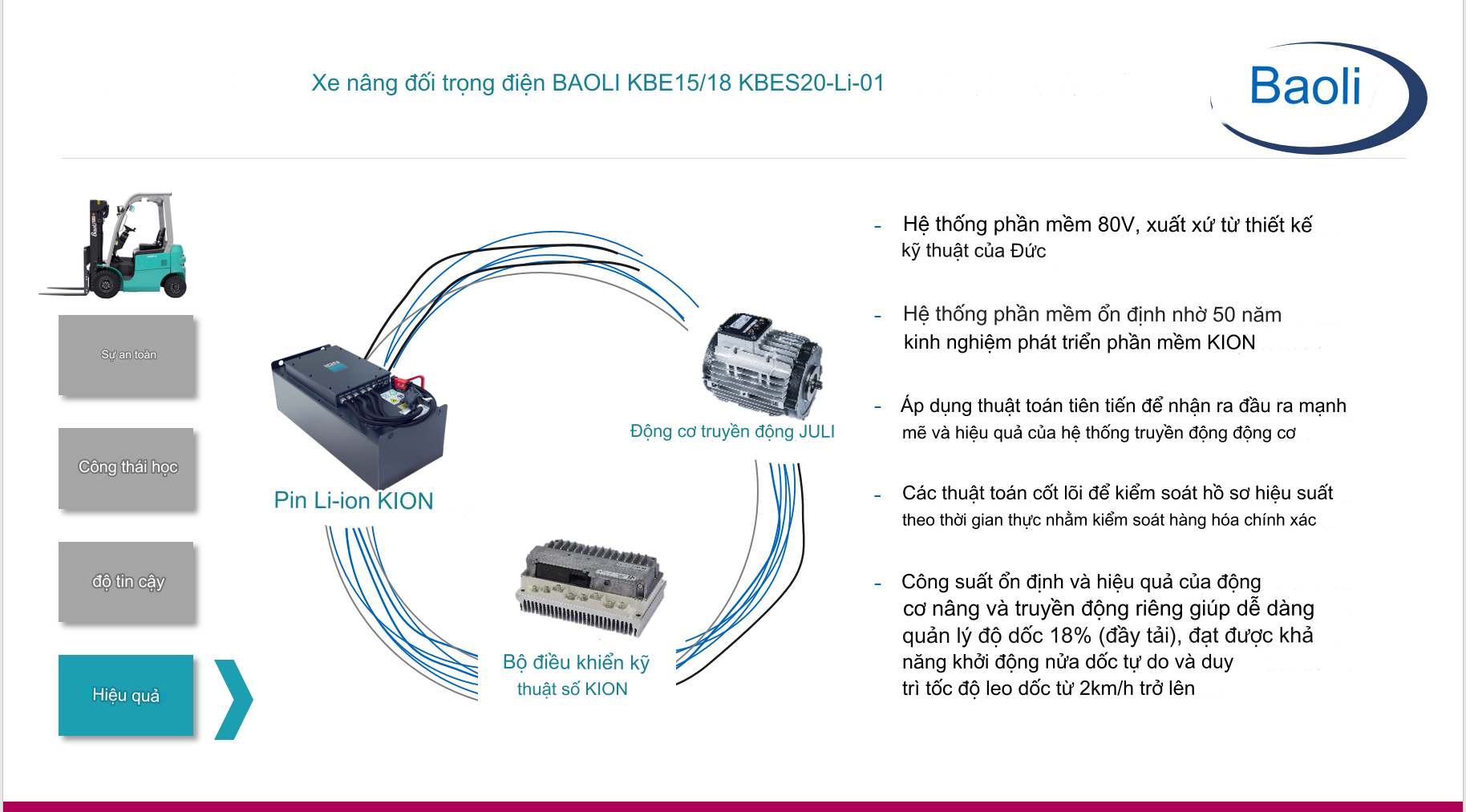 Pin Lithium Kion, động cơ truyền động JULI và bộ điều khiển kỹ thuật số KION