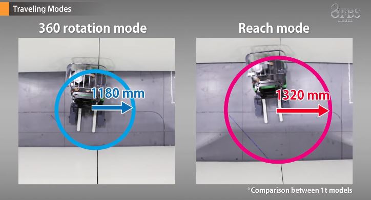 Dễ dàng xếp dỡ hàng hóa dài: chức năng Sideways Travel cho phép vận chuyển hàng hóa có chiều dài gần bằng thân xe mà không cần quay đầu.
