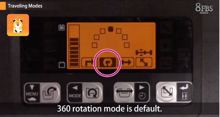 Khác với xe nâng điện thông thường, xe nâng điện Toyota 8FBS10 có thể di chuyển ngang và xoay tròn quanh tâm nhờ hệ thống 4-Way Travel Control System.