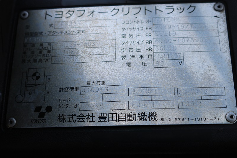 Thông số kỹ thuật xe nâng điện cũ 3.5 tấn Toyota