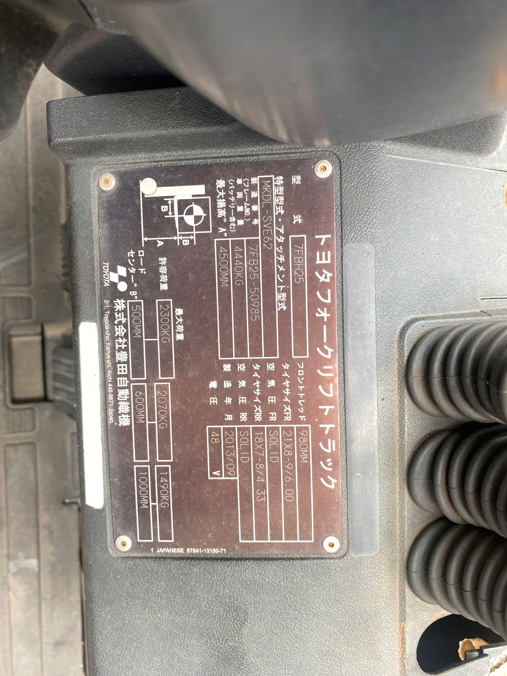 Bảng thông số xe Xe nâng điện cũ ngồi lái 2.5 tấn Toyota 7FBH25
