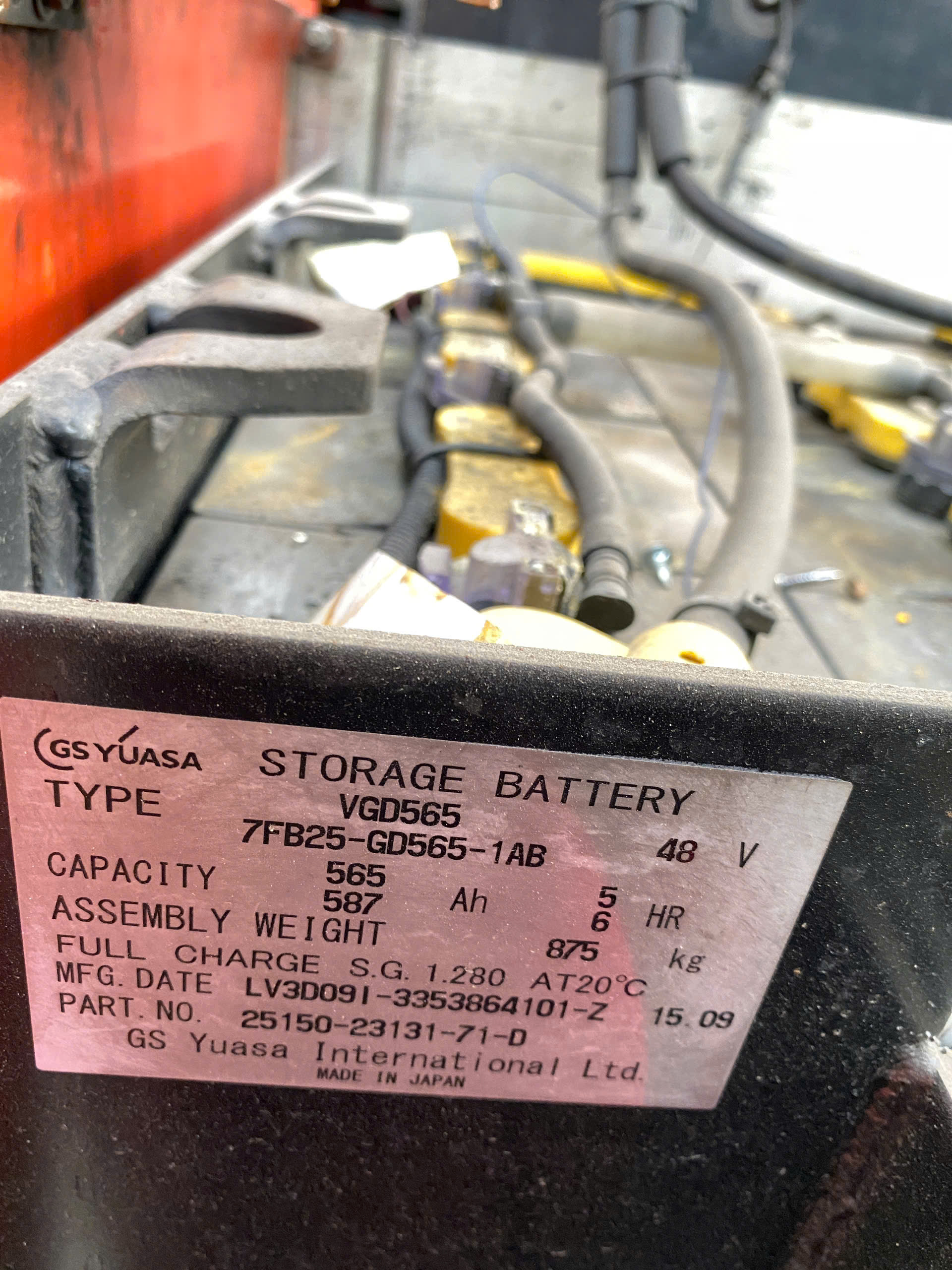 Thông số bình điện Xe nâng điện cũ ngồi lái 2.5 tấn Toyota 7FB25