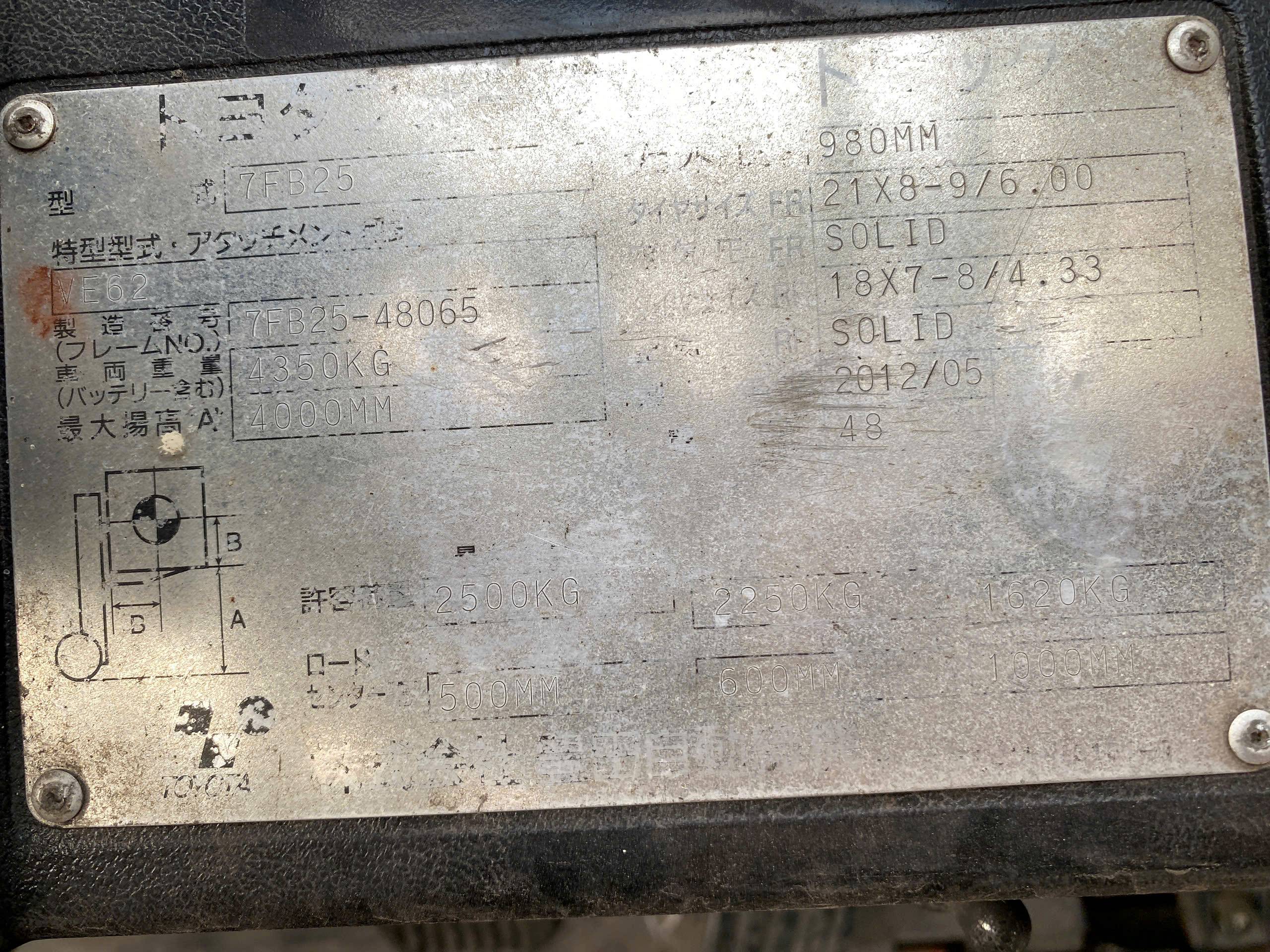 Bảng thông số xe Xe nâng điện cũ ngồi lái 2.5 tấn Toyota 7FB25