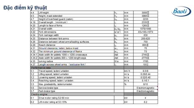 Với thiết kế nhỏ gọn, motor AC mạnh mẽ, pin 48 V dung lượng lớn và bộ điều khiển ZAPI thông minh, Baoli ER15-111 giúp doanh nghiệp tăng năng suất, giảm chi phí và tiến gần đến mục tiêu vận hành kho vận xanh – bền vững.