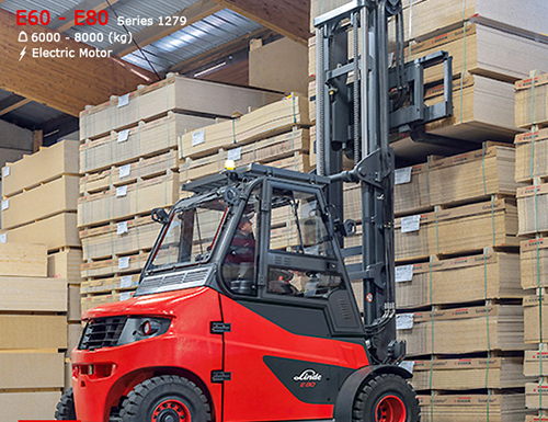 Các mẫu xe nâng điện Linde E60 - E80 mạnh mẽ của Linde được thiết kế để xử lý hiệu quả và an toàn các vật nặng lên tới 8.000 kg. Xe nâng được điều khiển bởi hai động cơ AC ba pha mạnh mẽ được tích hợp vào trục nhỏ gọn với hệ thống phanh không cần bảo trì. Điều khiển phương tiện điện tử cũng như các yếu tố điều khiển có thể vận hành chính xác như Điều khiển tải trọng Linde và điều khiển bàn đạp đôi đảm bảo sự tương tác hoàn hảo giữa con người và máy móc. Hệ thống quản lý năng lượng của Linde cũng góp phần mang lại hiệu quả chi phí cao cho các xe nâng điện lớn.
