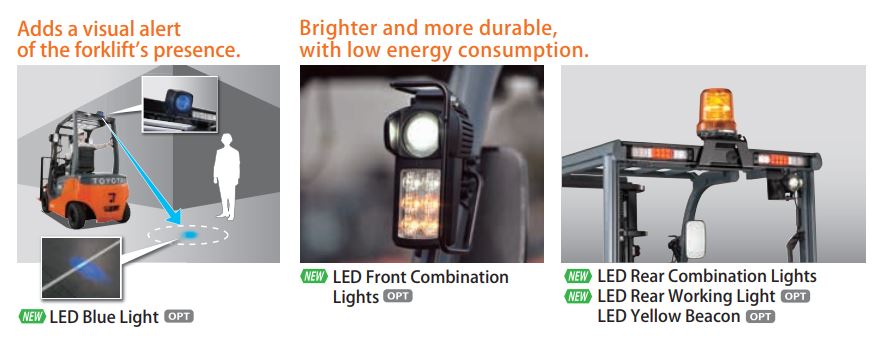 Đèn LED Rear Combination & Yellow Beacon: giúp nhận diện xe dễ dàng trong kho tối hoặc khu vực đông người.
