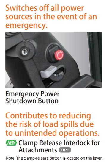Operator Presence Sensing System (OPS): ngắt nguồn điện khi người điều khiển rời khỏi ghế.
