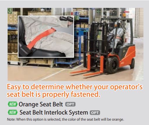 Seat Belt Interlock & Orange Belt Indicator: chỉ cho phép xe hoạt động khi người lái thắt dây an toàn.