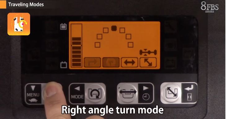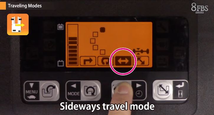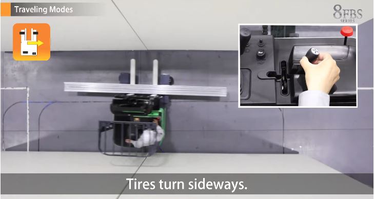 Sideways Travel Mode: xe di chuyển ngang trái – ngang phải, rất tiện khi vận chuyển hàng dài như thép hộp, ống nhựa hoặc tấm gỗ công nghiệp.