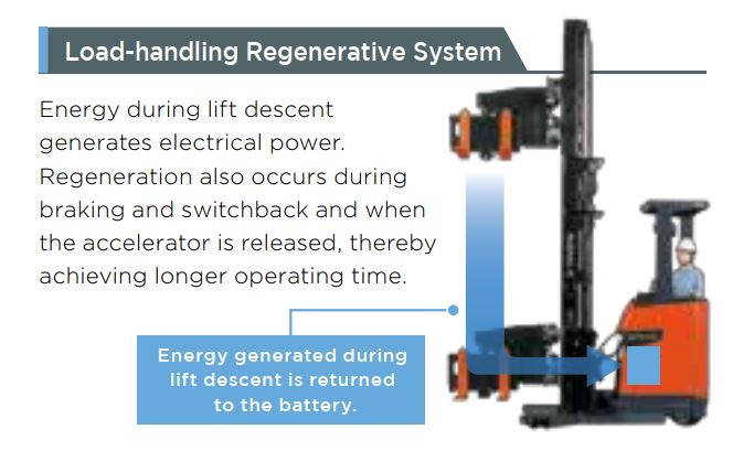 Nhờ các công nghệ này, xe nâng điện đứng lái Toyota 8RFBA10 trở thành công cụ lý tưởng cho kho hàng có kệ tầng cao và lối đi chật.