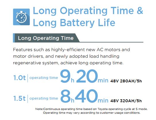 So với xe nâng dầu, xe nâng điện đứng lái Toyota 8RFBA10 tiết kiệm đến 70 % chi phí năng lượng mỗi năm, không phát thải CO₂ và ít cần bảo dưỡng.