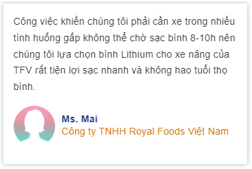 Cảm nhận khách hàng đã sử dụng dịch vụ của xe nâng TFV