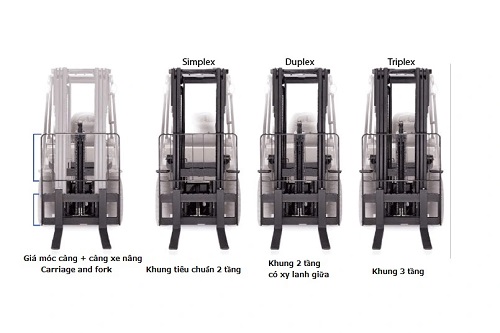 4. Xác định các loại khung nâng: - Xác định chiều cao nâng để lựa chọn khung nâng hợp lý. (Khung tiêu chuẩn, khung chui container, khung chui container và nâng hàng cao?) - Mỗi loại khung đều có những lợi thế và bất lợi riêng để chúng ta có thể lựa chọn loại khung phù hợp. |