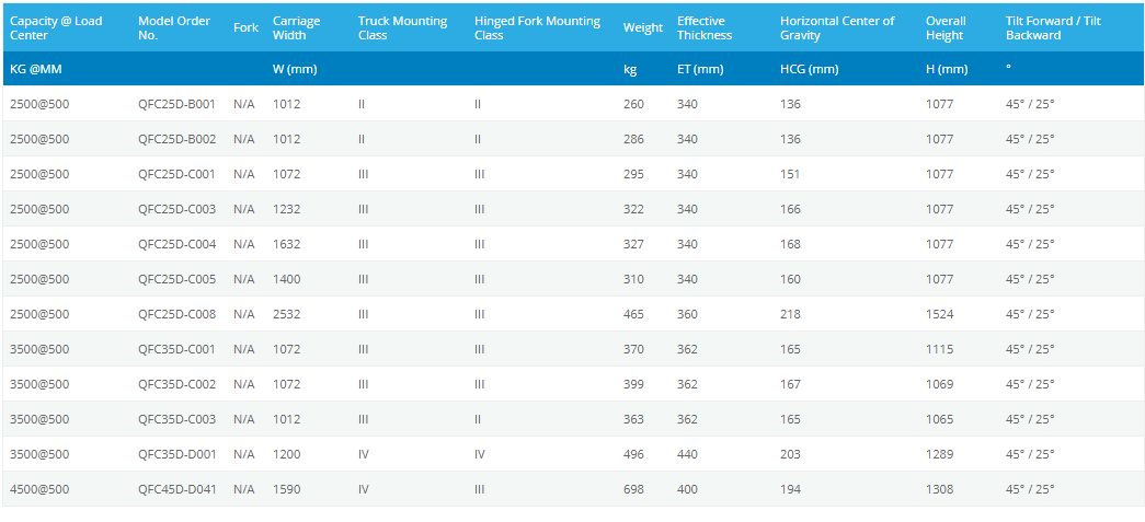 Tăng độ nghiêng về phía trước và phía sau của dĩa, 25 ° lên và 45 ° trở xuống. Có thể được sử dụng với xô hoặc thùng chứa để đổ thùng hàng rời an toàn và hiệu quả, cải thiện đáng kể hiệu quả và năng suất.